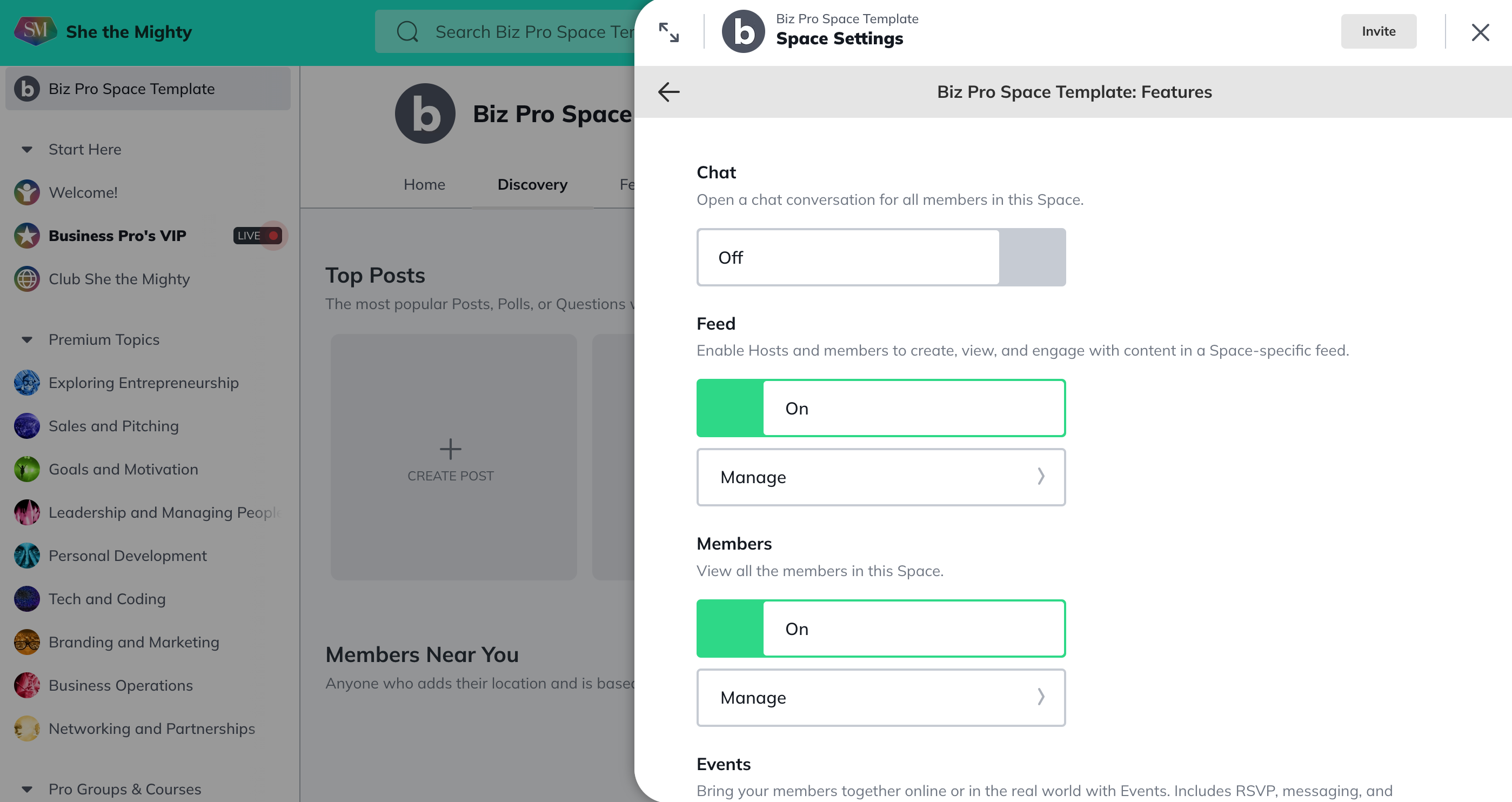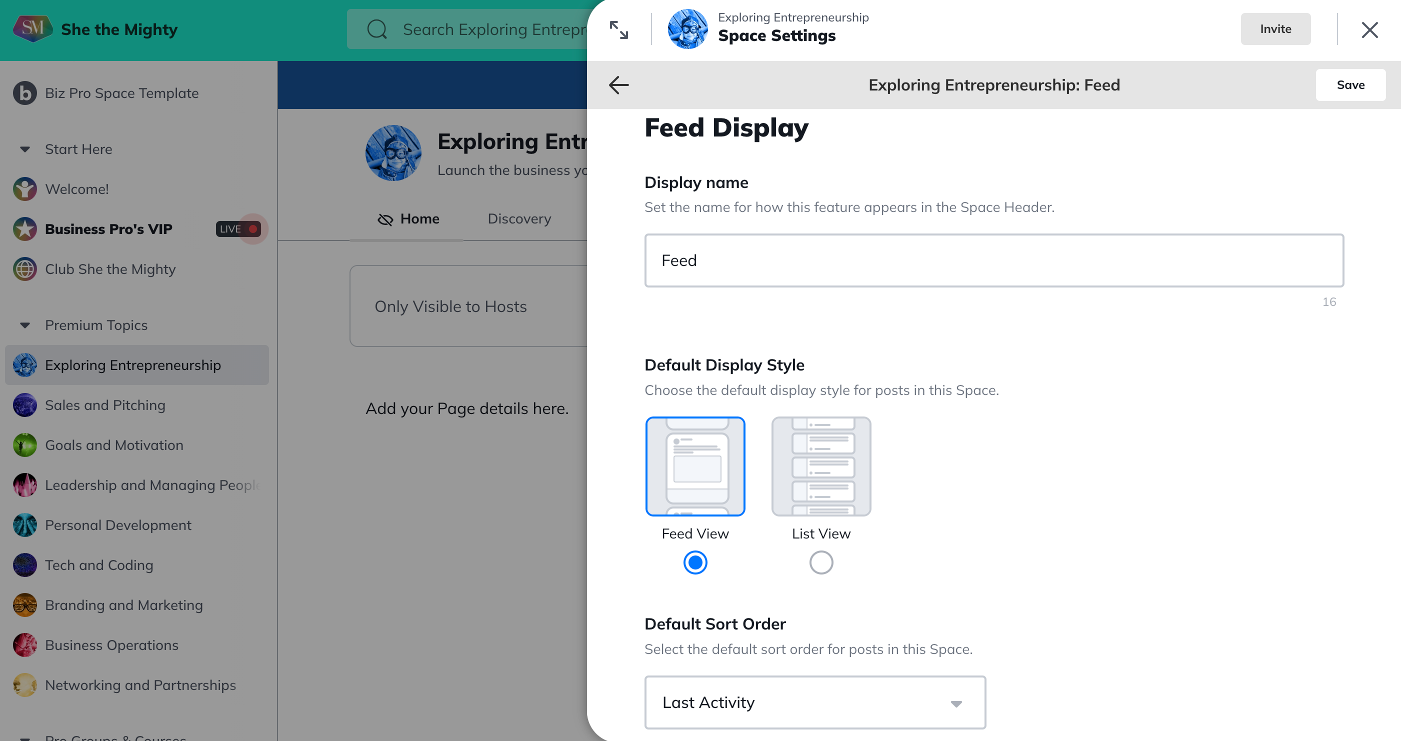 Feed: This enables Hosts and members to create, view, and engage with content in a Space-specific feed, like the Activity Feed today!