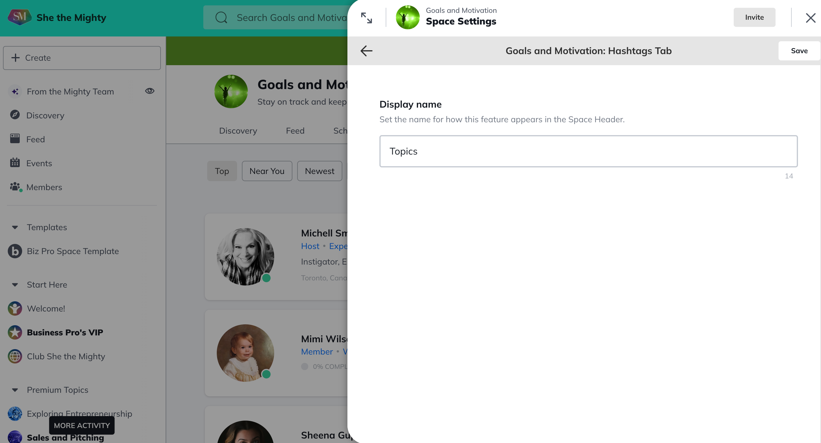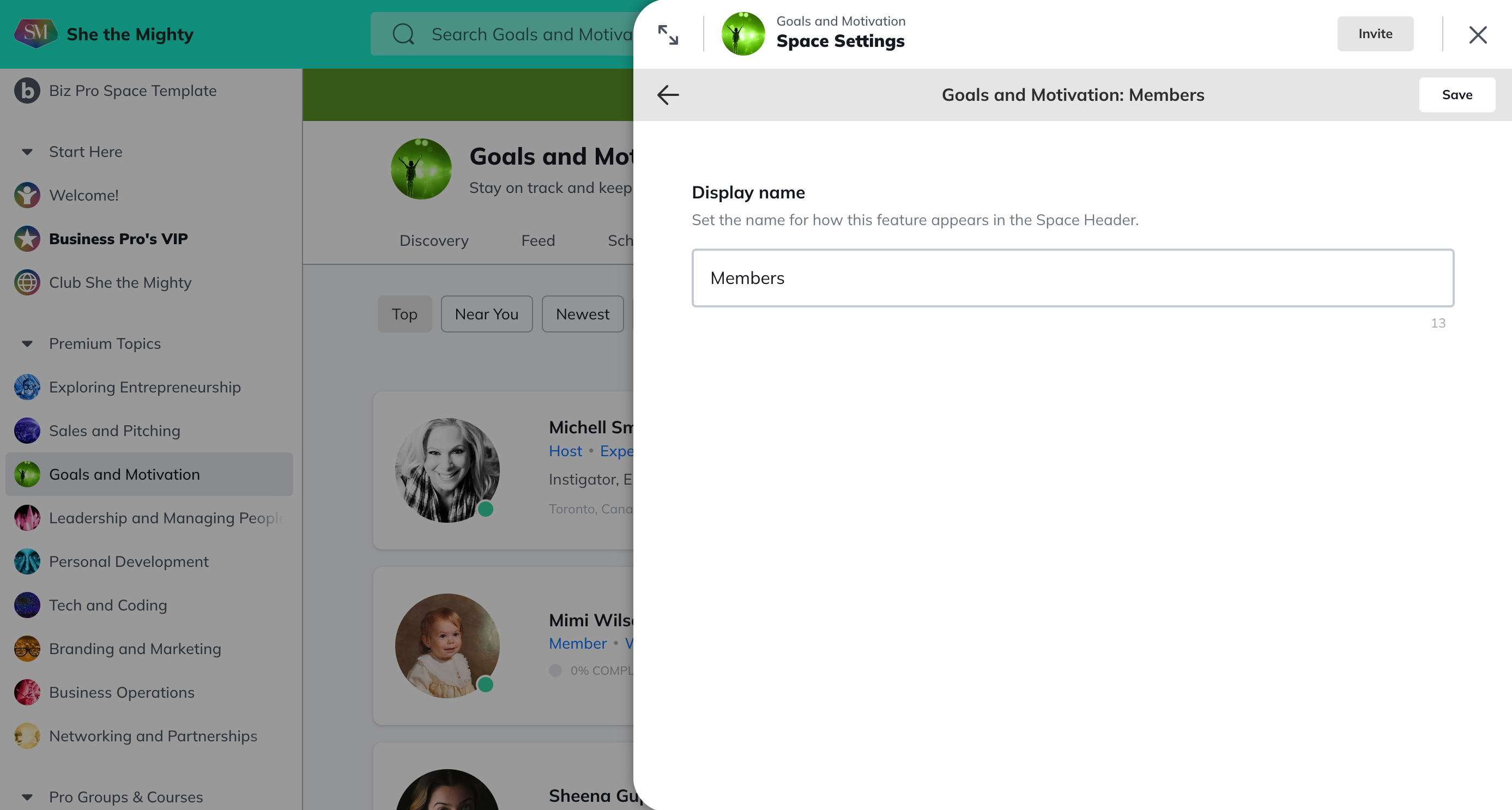 Members: A feature that you can rename and will allow you to view all the members in the Space.