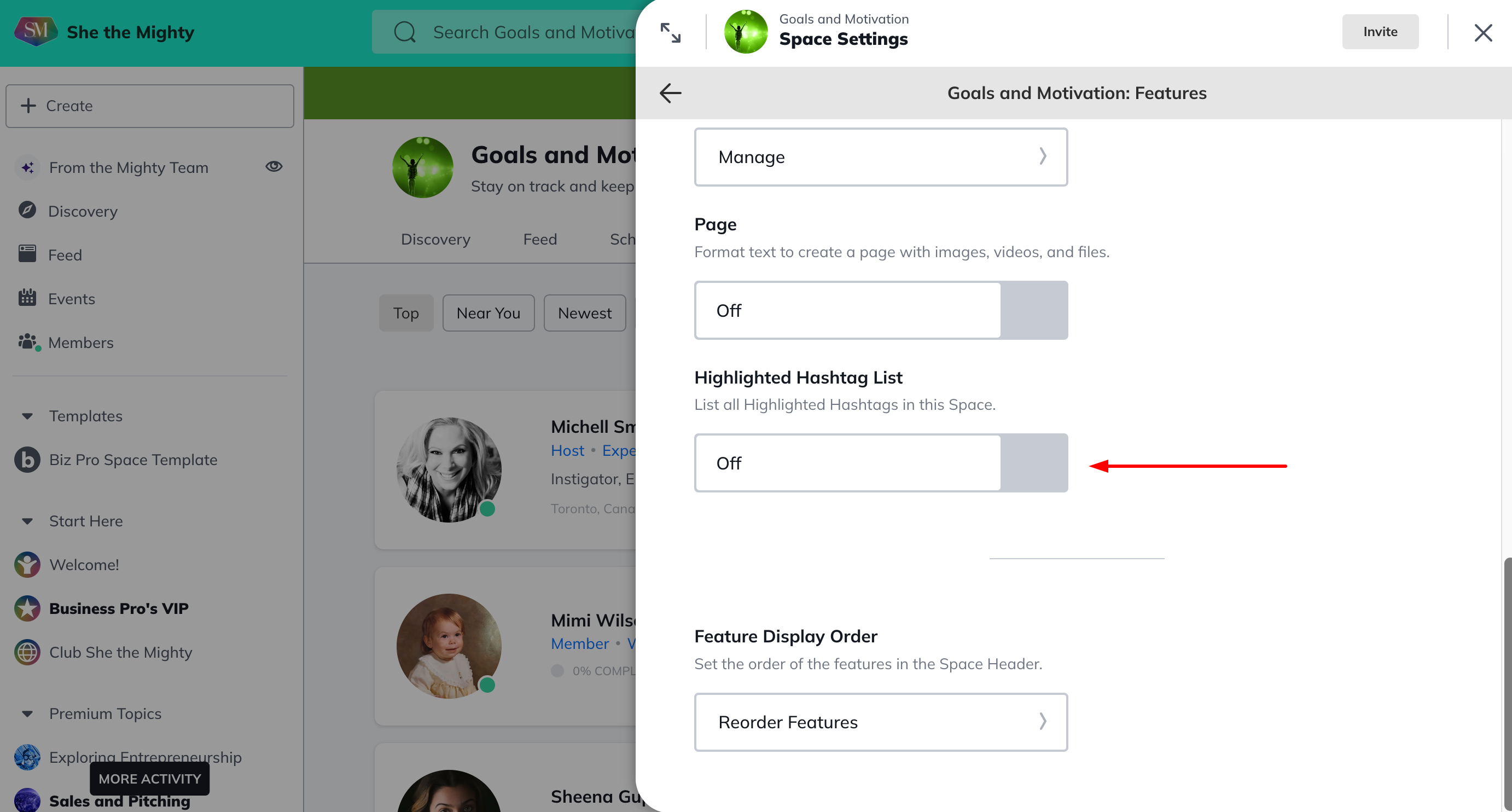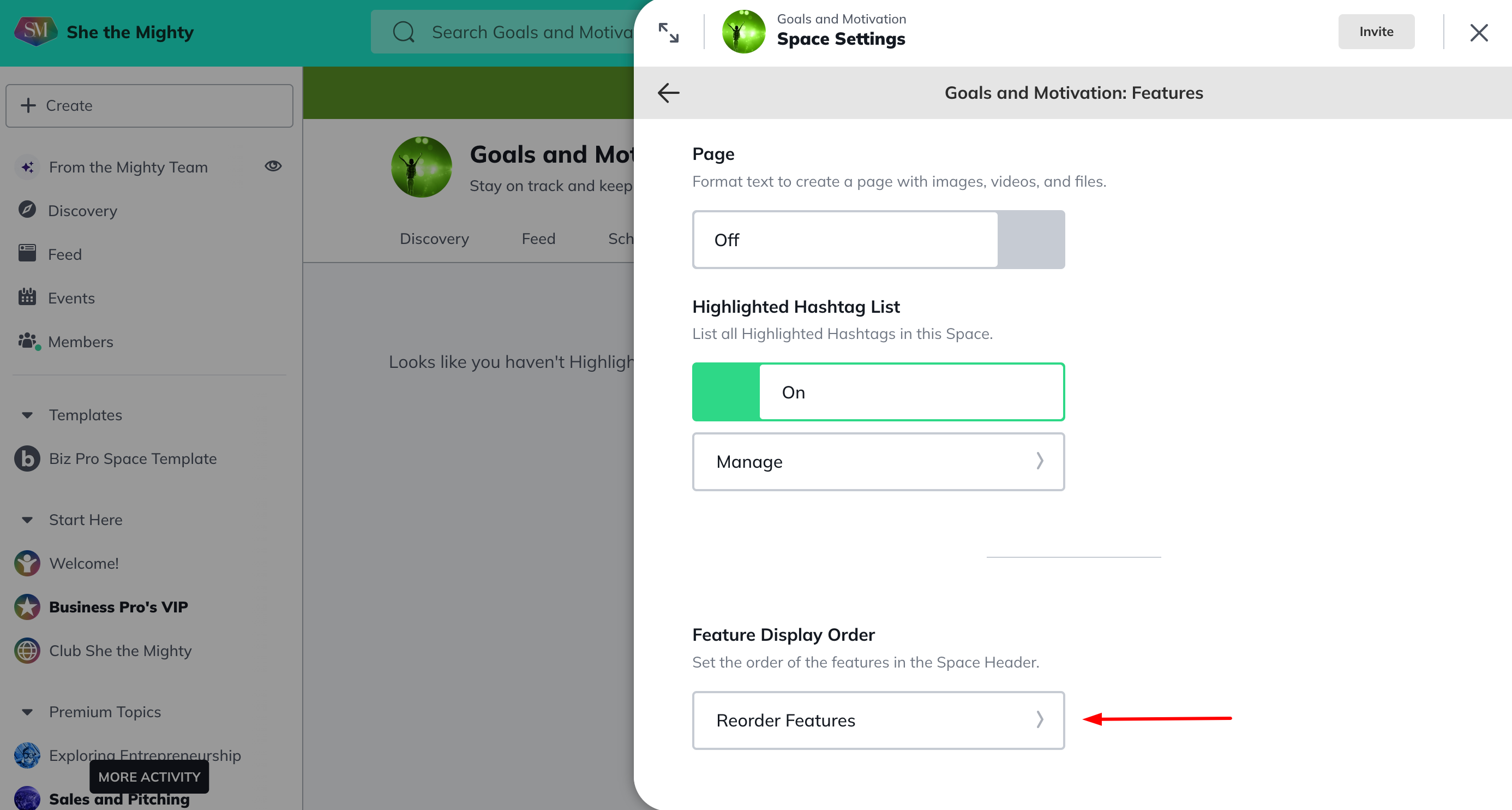Highlighted Hashtag List: a feature that will surface a list of highlighted hashtags in a Space, go to the gear icon > Features > Highlighted Hashtag List.