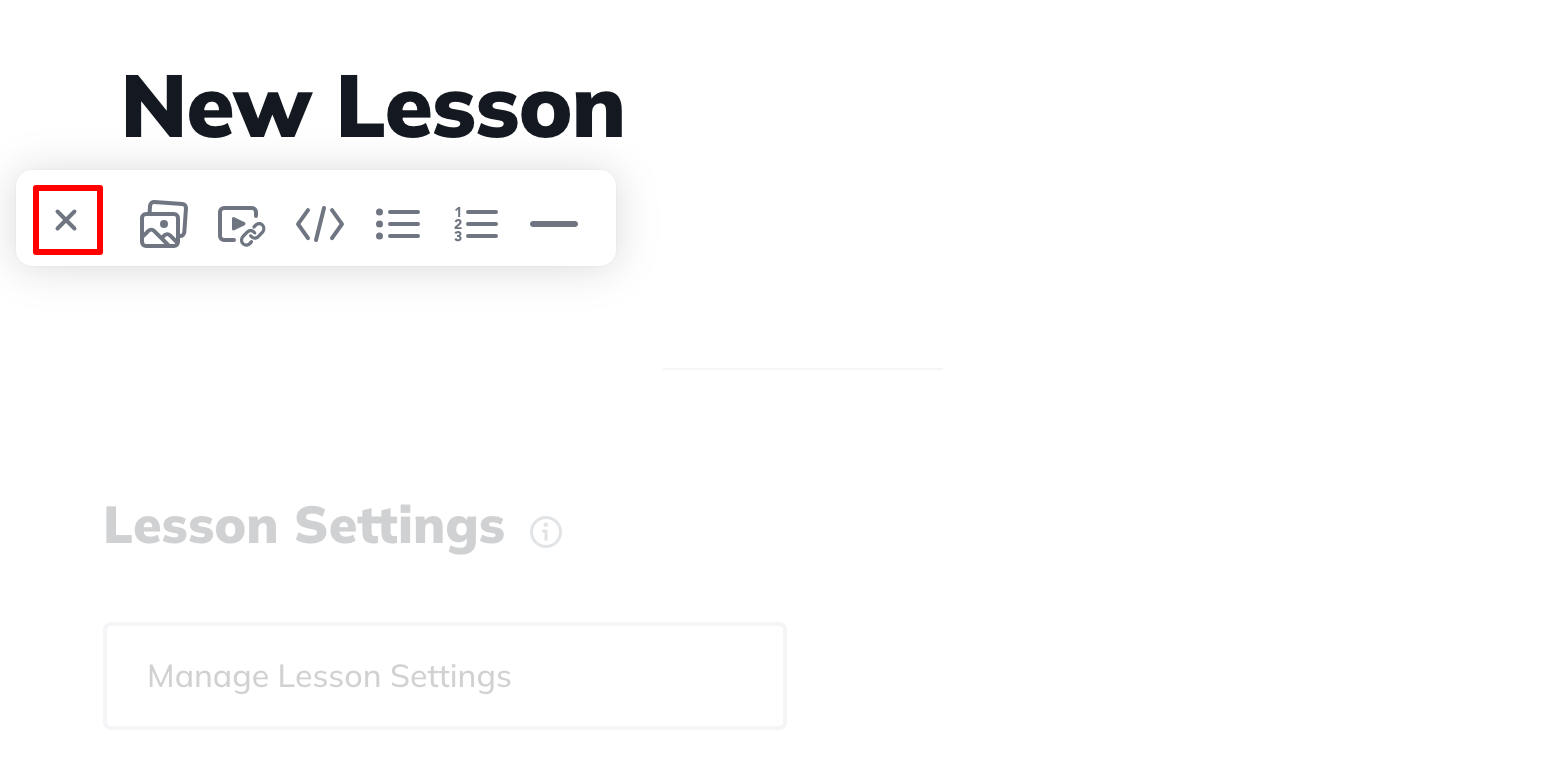 To add images, GIF’s, videos, bulleted or numbered lists or dividers to your Lesson post, click into the text editor and click on the + button on the left side to open the editor options. The first image you add to a Lesson will become the default Lesson image until you upload a Lesson thumbnail. You can upload a thumbnail in the Manage Lesson Settings section.